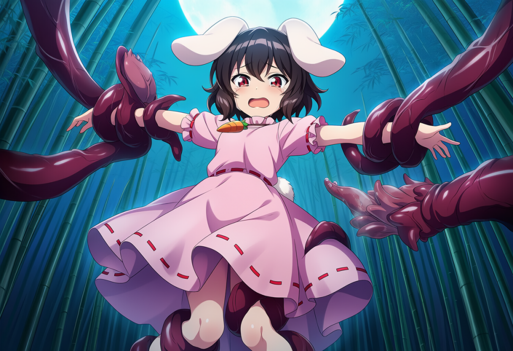 [ai画像&動画] 触手に捕まる 妹紅、アリス、ぬえ、典、フラン、天子